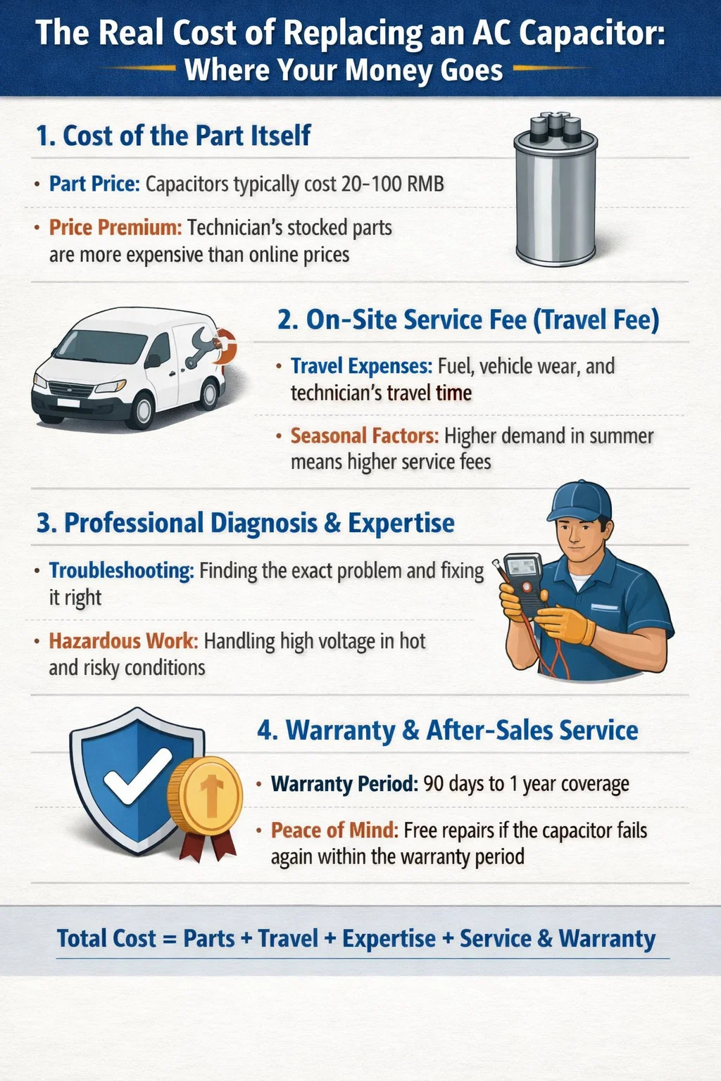 Quanti revera constat ut AC capacitorem reponere? Multi vident quod parva metallum potest vendere pro paucis decem Yuan online, sed reparationis libellum venit ad plures centum Yuan, relinquens eos sentiens turbat.
